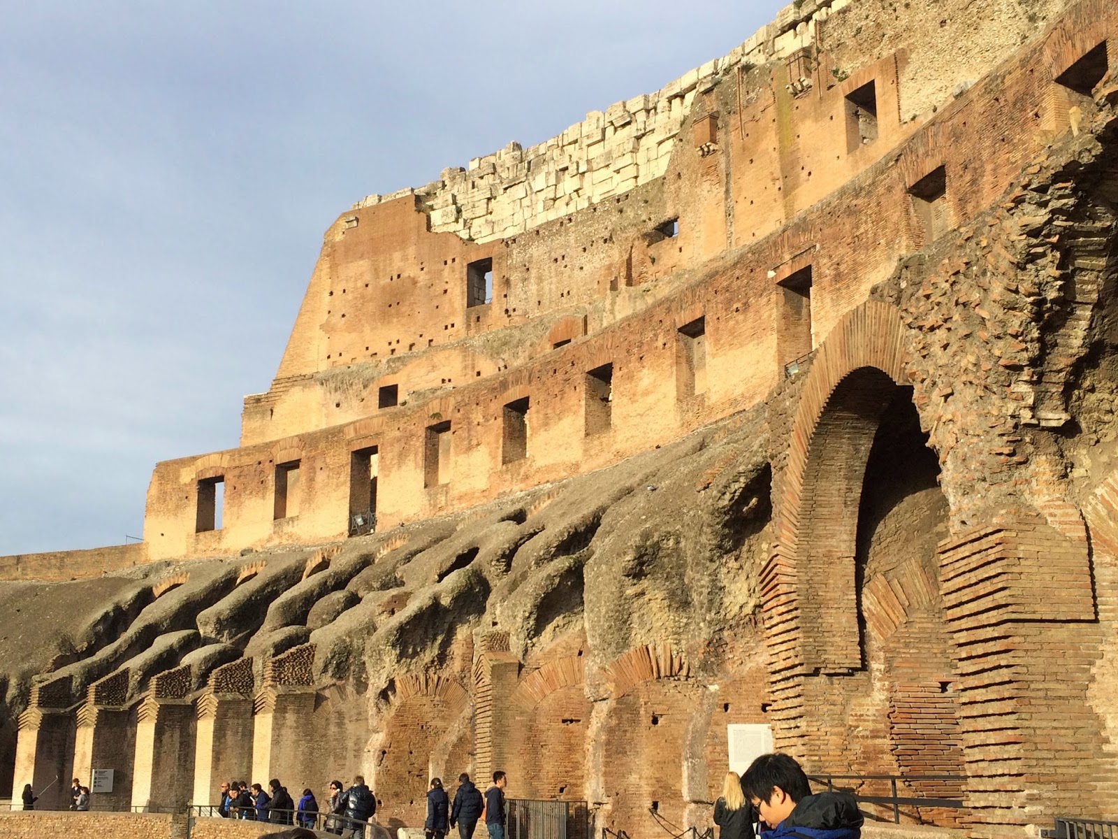 The first place we went was the Coliseum. Thanks to this being winter, and the sun rising later than in summer, we got there when the sun was still fairly low in the sky, which is the reason for some of the lovely coloring on the rocks: